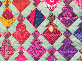 Het ronde werkje stond in de allereerste Klossie. Het quilt-mandje maakte mijn dochter voor mij. De letters kocht ik bij Marijke van "Steekjes en Kruisjes". Met de machine geborduurd, maar dat is niet te zien. De randjes borduurde ik zelf. Er moet nog een blauw borduurwerkje worden toegevoegd. De bijpassende stof vond ik bij Carmen van "Stitchers-Inn" in Nunspeet.
